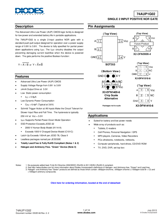 SINGLE 2 INPUT POSITIVE NOR GATE