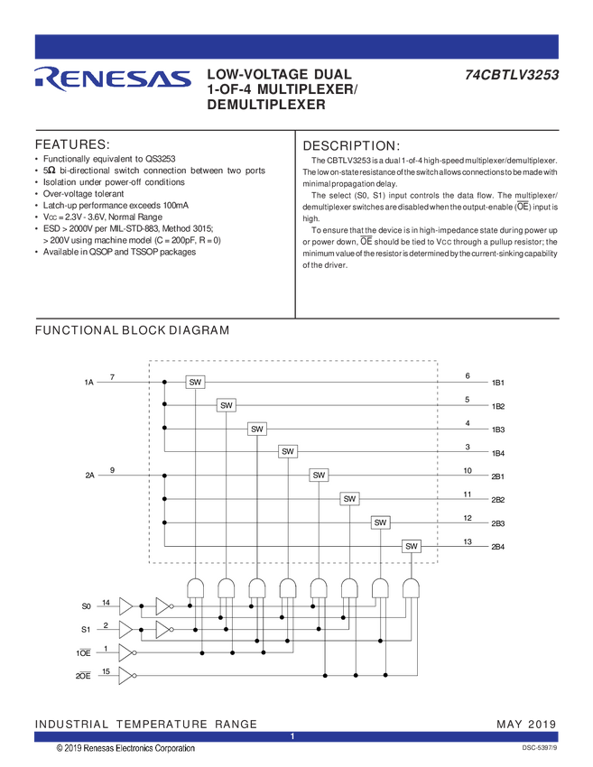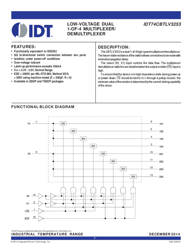 Low-Voltage Dual 1-of-4 Multiplexer/Demultiplexer