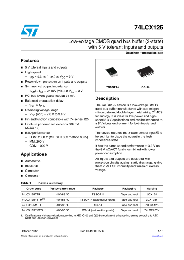 Quad buffer/line driver with 5 V tolerant input/outputs; 3-state