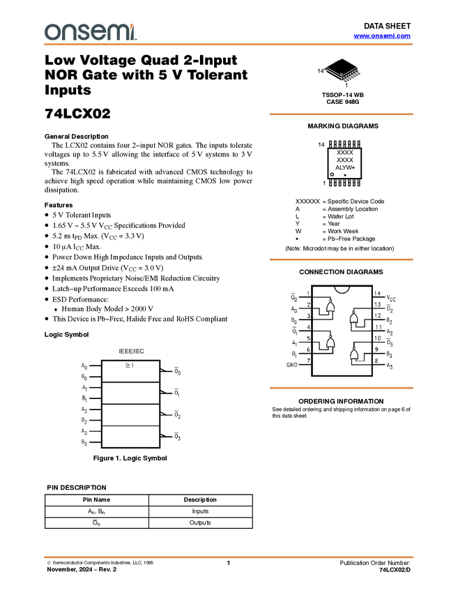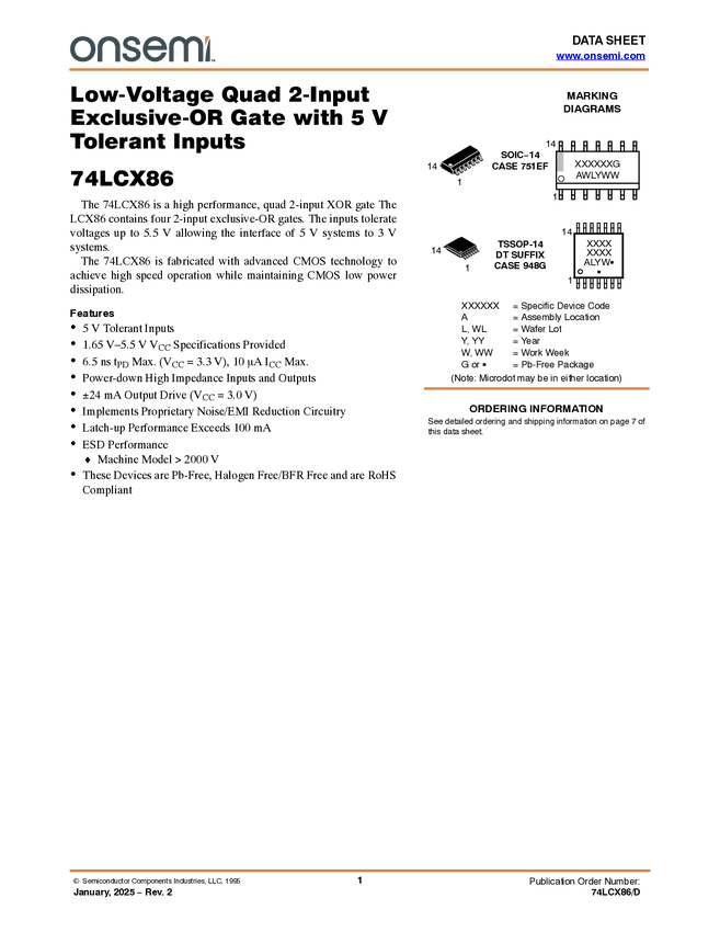 Low Voltage Quad 2-Input Exclusive-OR Gate with 5V Tolerant Inputs