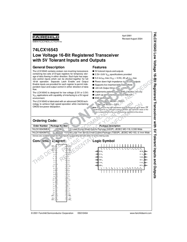 Low Voltage 16-Bit Registered Transceiver with 5V-Tolerant Inputs and Outputs