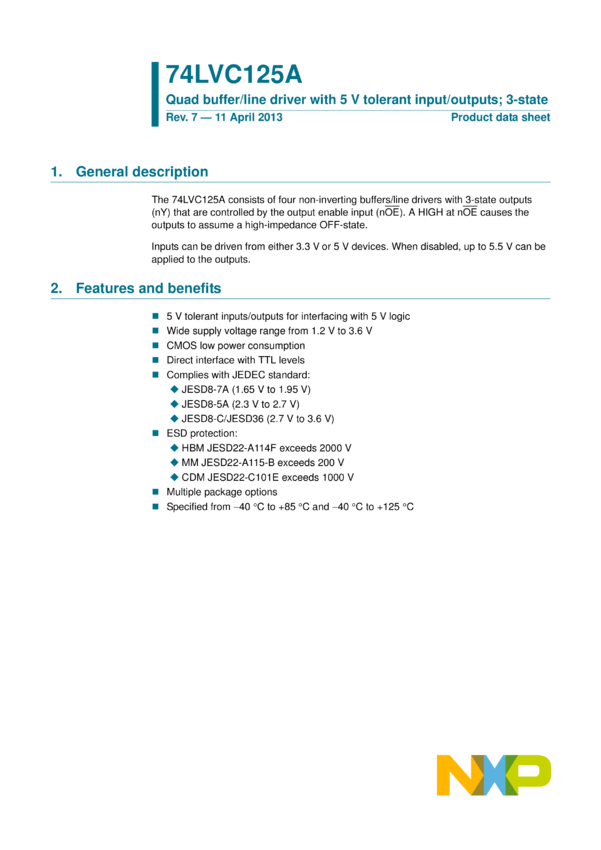 Quad buffer/line driver with 5 V tolerant input/outputs; 3-state