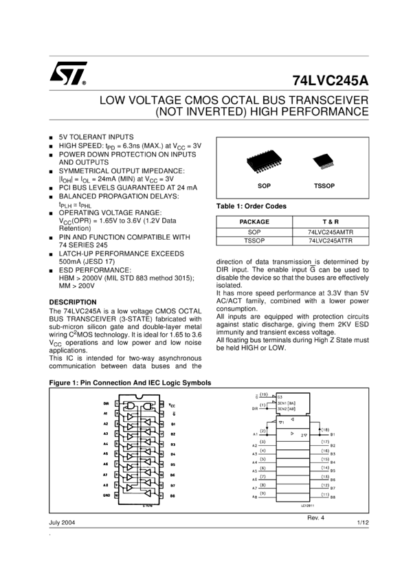 Low Voltage CMOS Octal Bus Transceiver (3-State) Advenced Performance