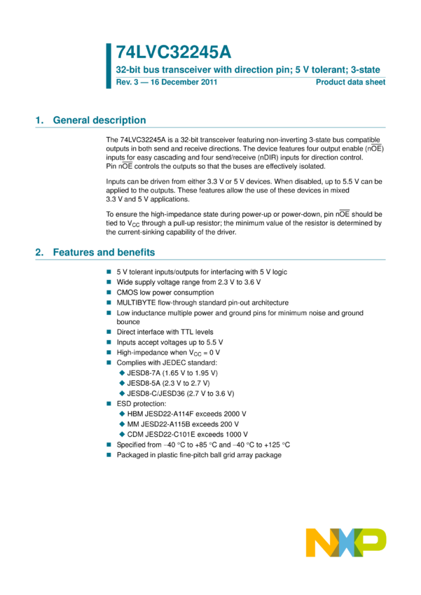 32-bit bus transceiver with direction pin; 5 V tolerant; 3-state