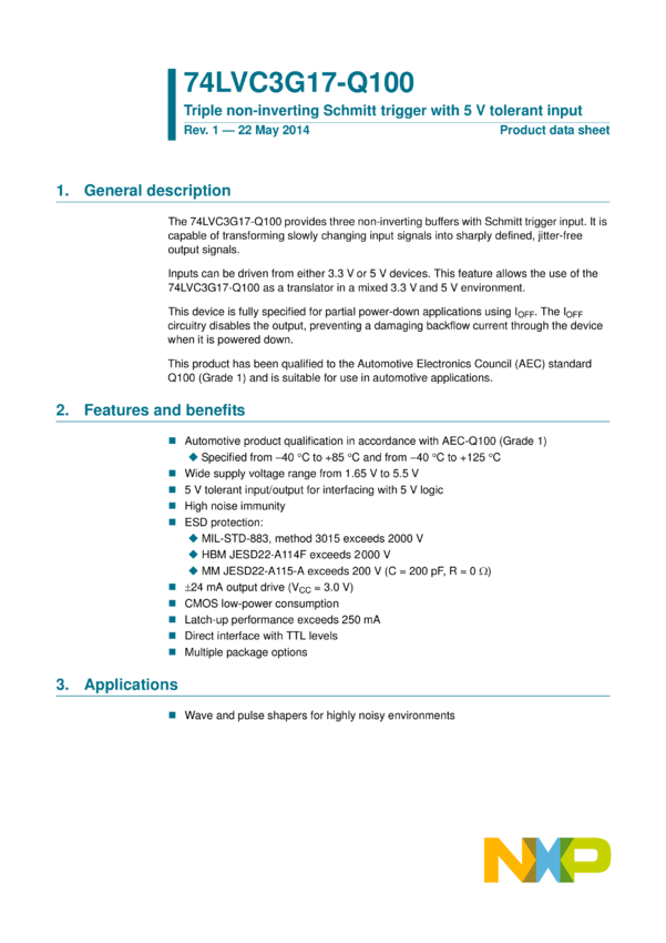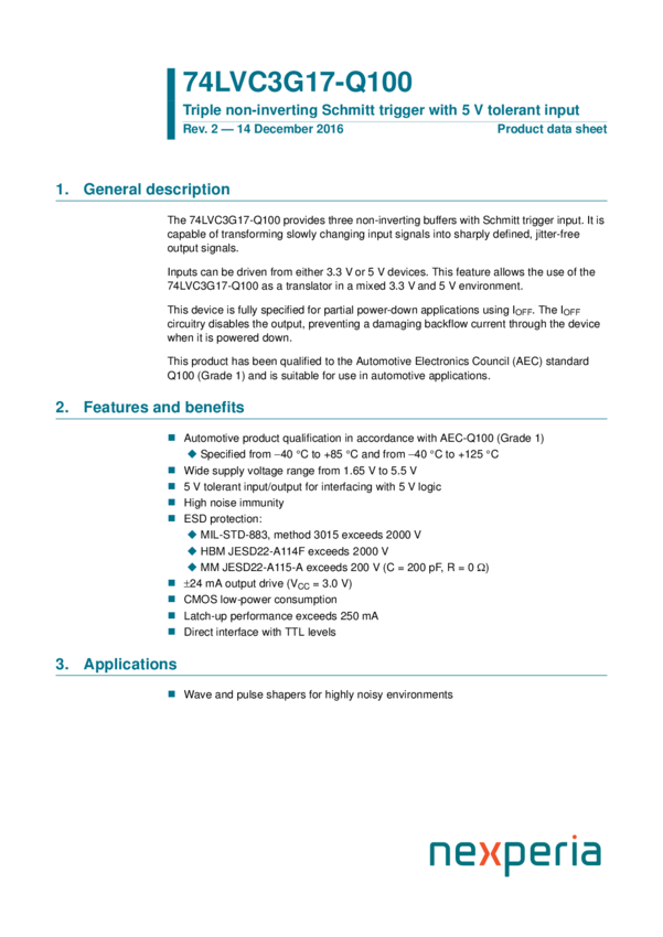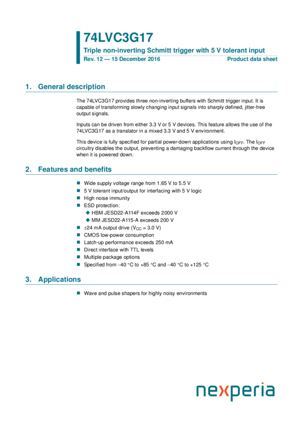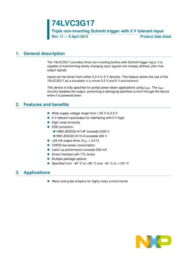 Triple non-inverting Schmitt trigger with 5 V tolerant input