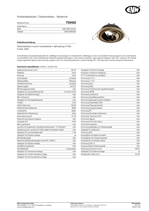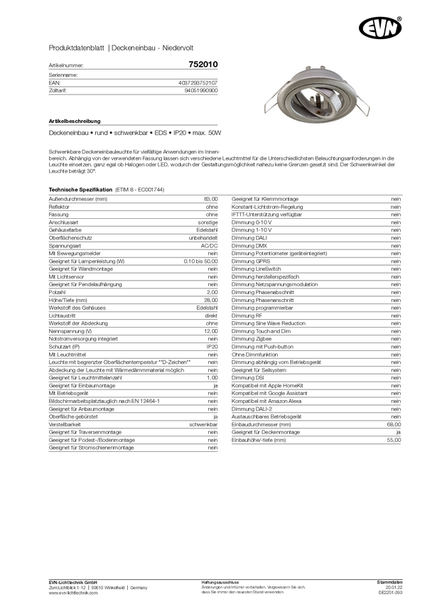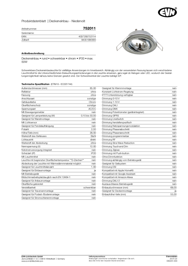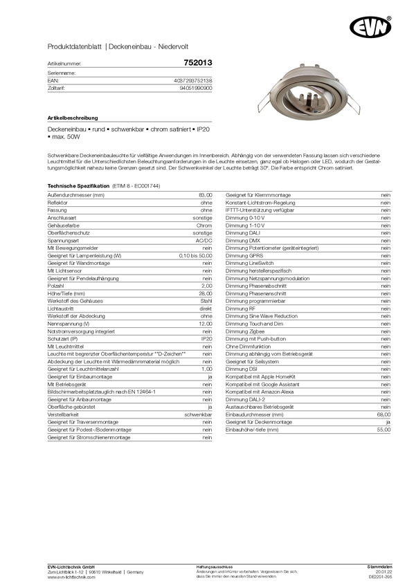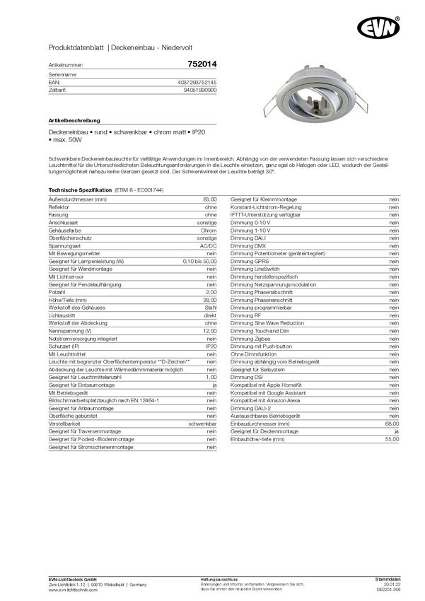 Pierścień montażowy do oświetlenia EVN 752014 752014 50 W