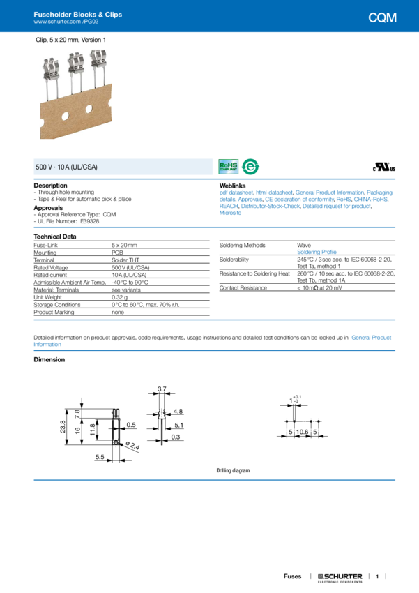 CQM FUSEHOLDER CLIP 5X20 NICKEL PLATED
