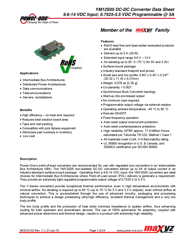 Module DC-DC 1-OUT 0.7525V to 5.5V 5A 28W 5-Pin SMD T/R