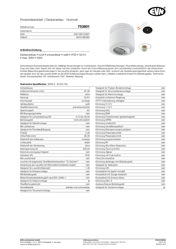 Pierścień montażowy do oświetlenia EVN 753801 753801 50 W