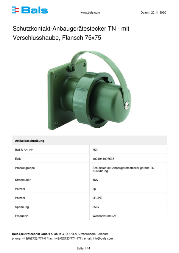 Bals Elektrotechnik 753 Gniazdo zmontowane IP67 czarny