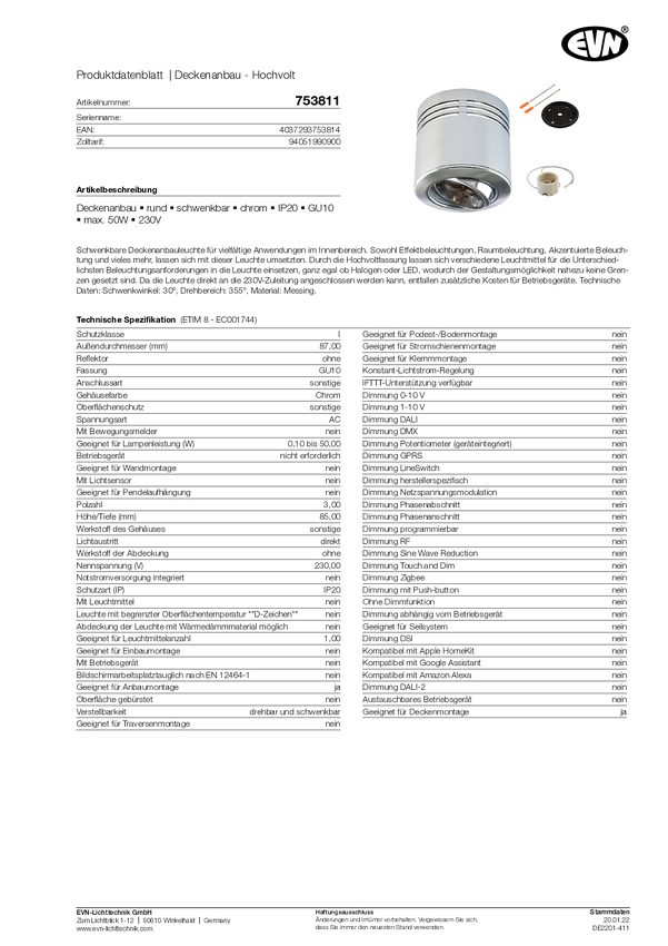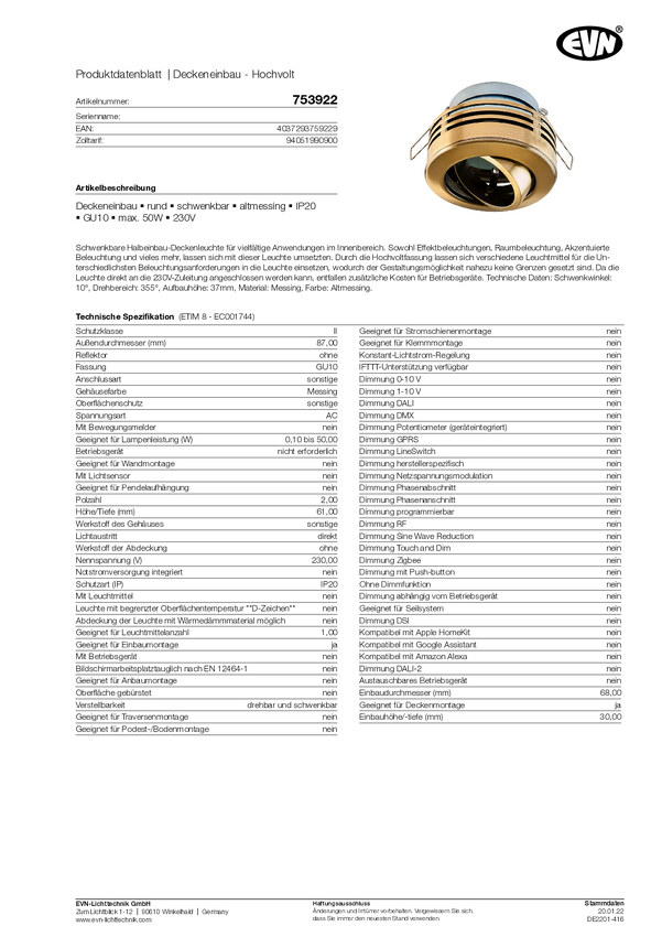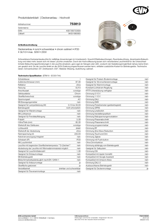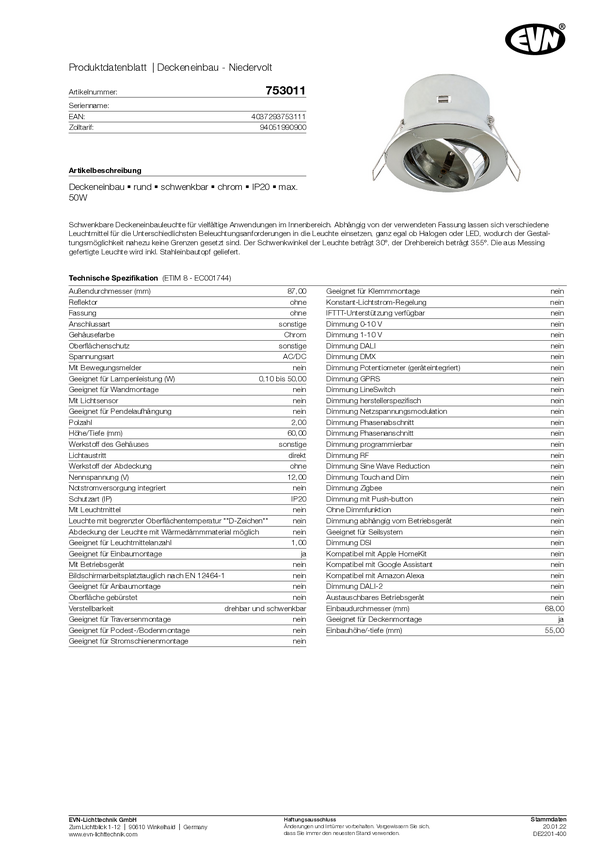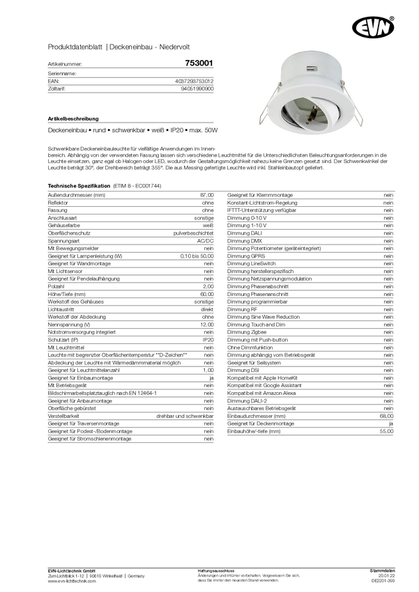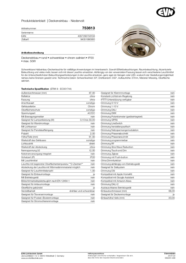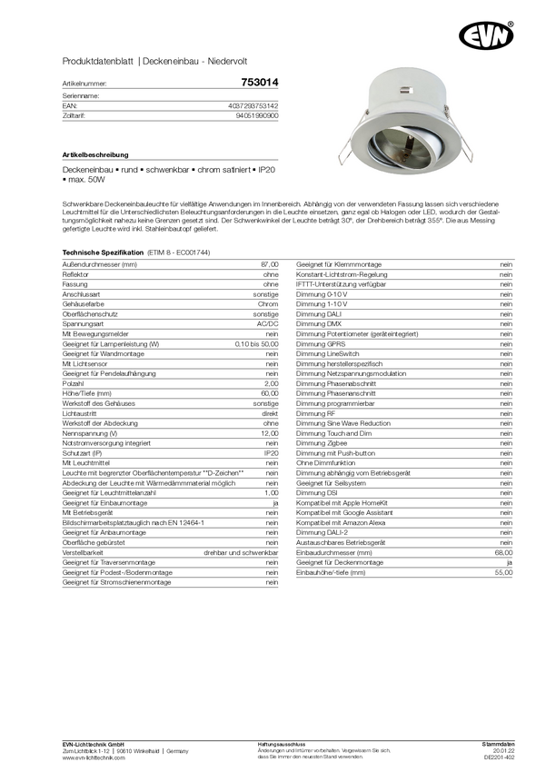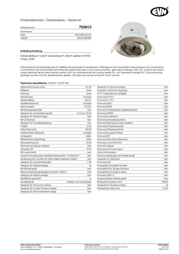 Pierścień montażowy do oświetlenia EVN 753622 753622 50 W
