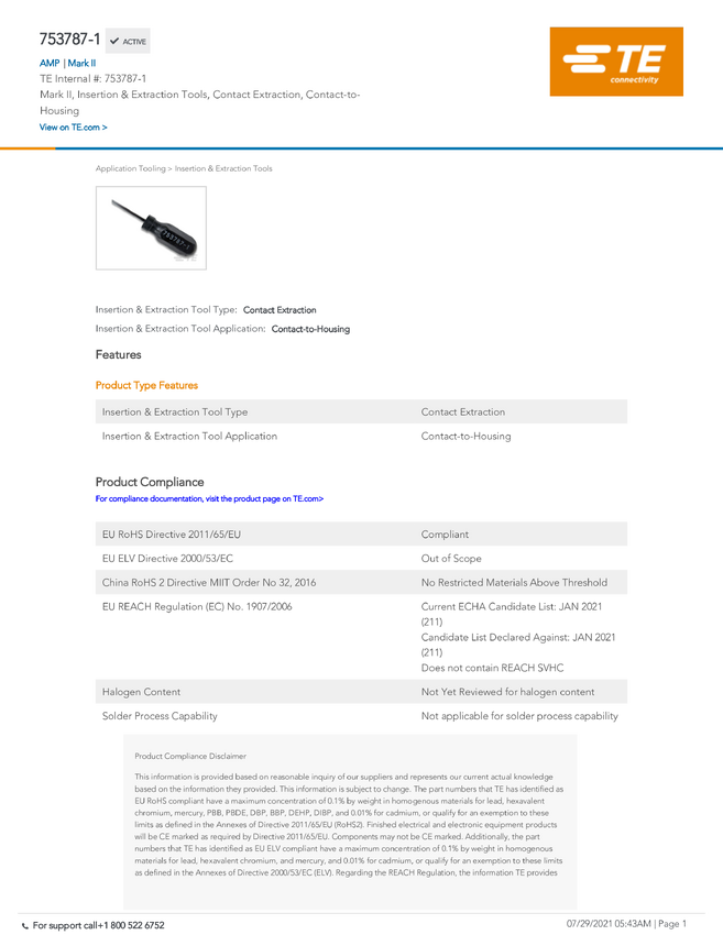 TE Connectivity TE AMP Insertion-Extraction Tools 753787-1