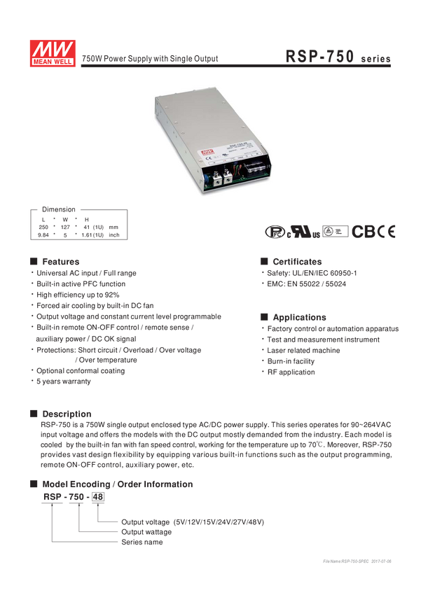 Zasilacz modułowy 48V 15,7A 753,6W MEAN WELL | RSP-750-48