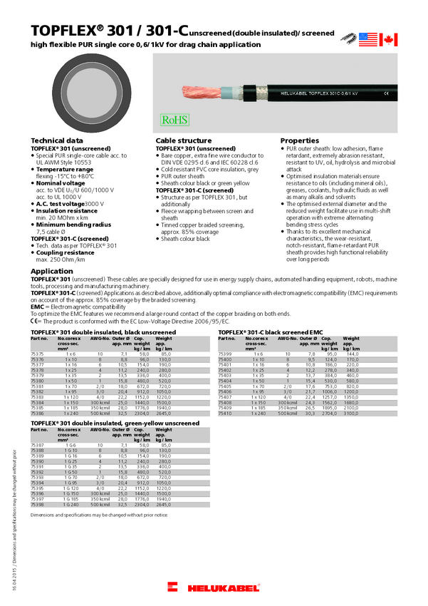 Przewód do prowadnicy kabli Helukabel 75388-500, 1000 V, 1 G 8.80 mm, 500 m