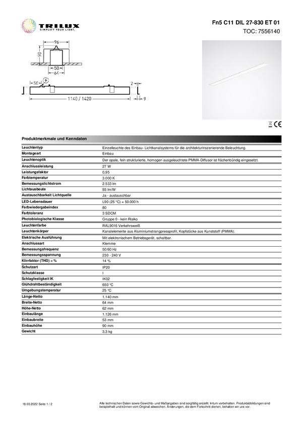 Lampa sufitowa LED Trilux Fn5C11DIL27-830ET01 7556140 27 W 2533 lm biały
