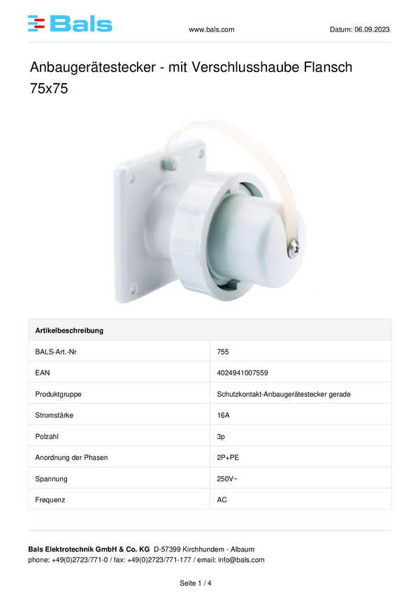 Rozszerzenie złącza CEE Bals Elektrotechnik 755 16.0 A 250 V