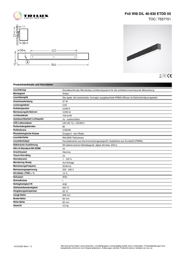 Lampa ścienna LED Trilux Fn5 WI8 DIL #7557151 7557151 37 W czarny