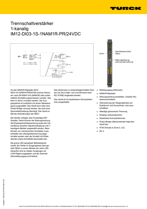 Turck IM12-DI03-1S-1NAM1R-PR/24VDC 7580049 1 szt.
