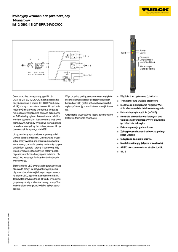 Turck IM12-DI03-1S-2T-SPR/24VDC 7580033 1 szt.