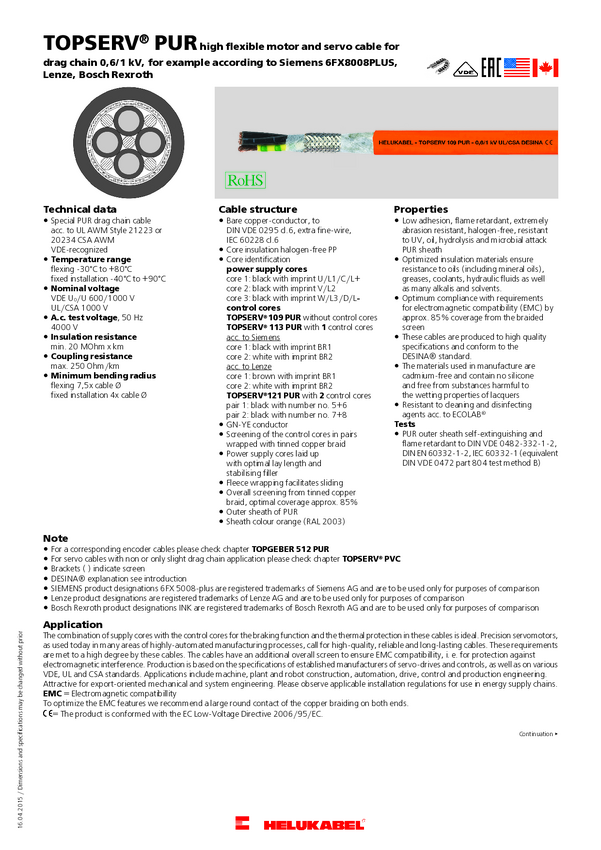 Helukabel TOPSERV® 109 Przewód serwo 4 G 6 mm² pomarańczowy 75946 100 m
