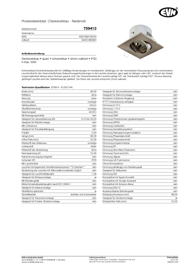 Pierścień montażowy do oświetlenia EVN 759413 759413 50 W