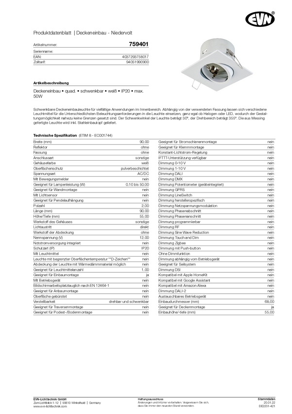 Pierścień montażowy do oświetlenia EVN 759401 759401 50 W