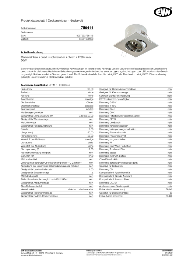 Pierścień montażowy do oświetlenia EVN 759411 759411 50 W