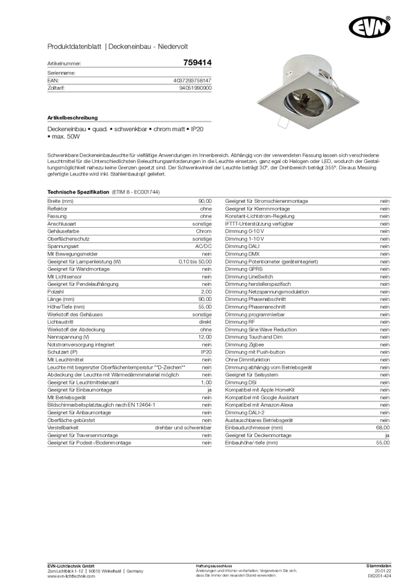Pierścień montażowy do oświetlenia EVN 759414 759414 50 W