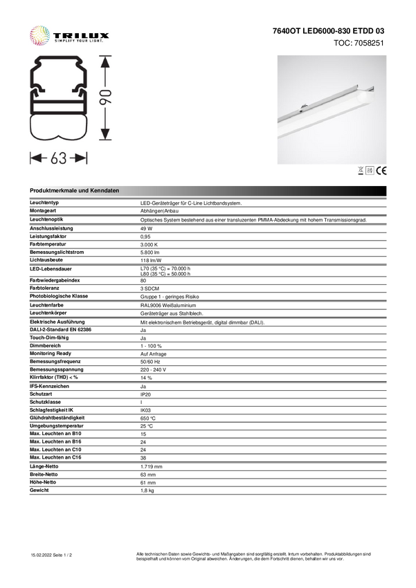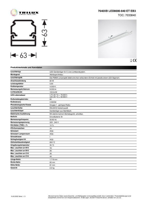 Ciąg świetlny Trilux 7640XBLED8000840ETUR 7034440, 1 szt.