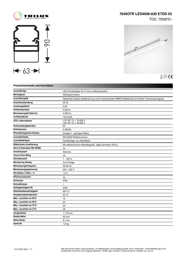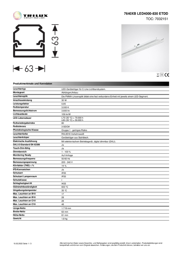 Ciąg świetlny Trilux 7640XBLED4000830ETDD 7032151, 1 szt.