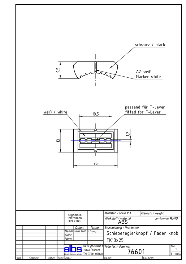 ALPS 76601 Alps Przycisk przesunięcia czarny (D x S) 13 mm x 25 mm 1 szt.
