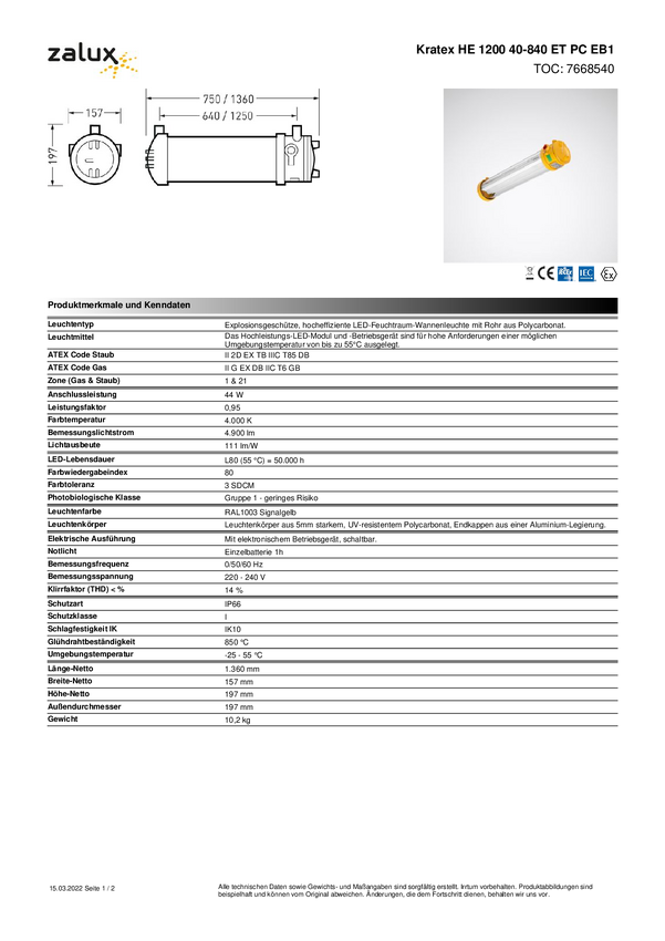 Trilux Kratex NS #7668540 Lampa LED do wilgotnych pomieszczeń LED 44 W biały żółty