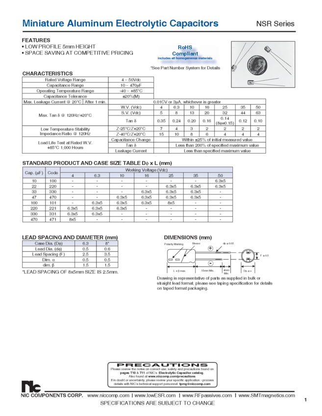 Cap Aluminum 100uF 10V 20% (6.3 X 5mm) Radial 5mm 3.3 Ohm 76mA 1000h 85°C Ammo Pack