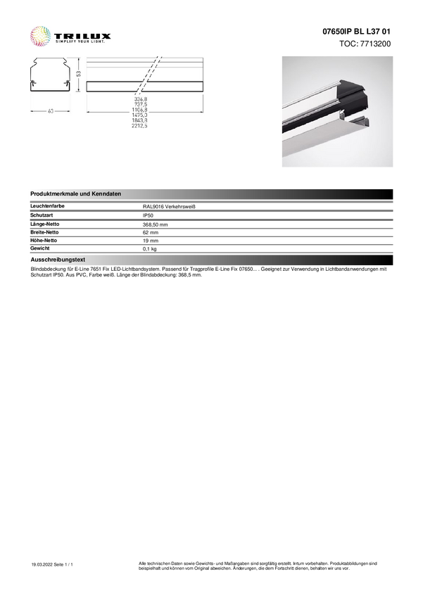 Trilux 7713200 Pokrywa ślepa 07650IP BL L37 01 1 szt.