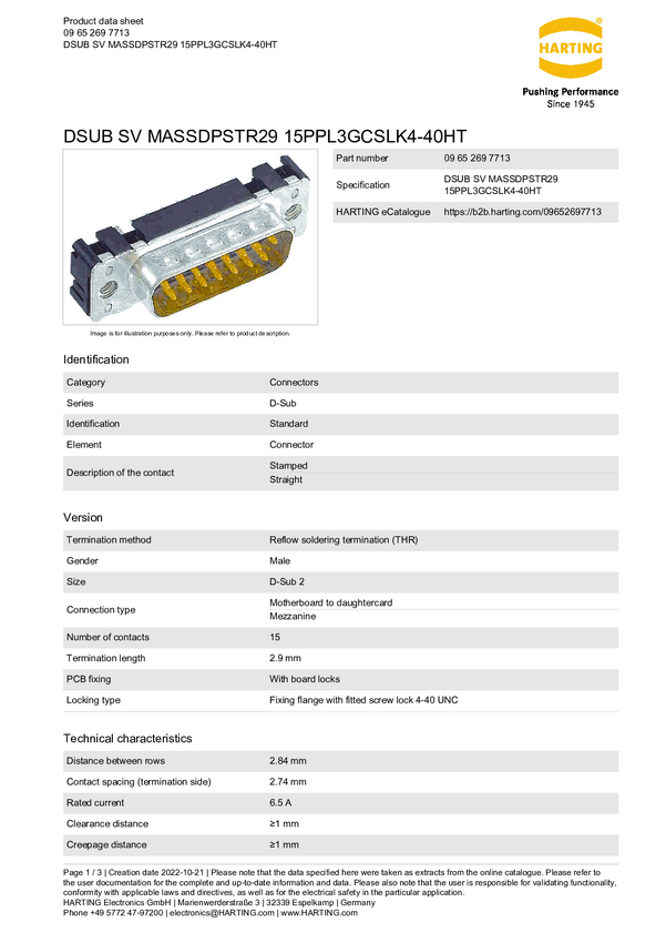 Harting 09652697713 Złącze męskie 09 65 269 7713, styki: 15, 1 szt.