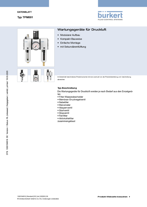 Regulator ciśnienia Bürkert TFU006 771855