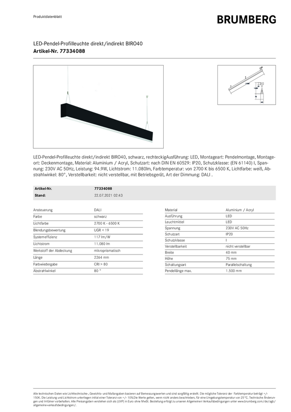 Lampa podwieszana LED Brumberg 77334088 77334088 brak czarny