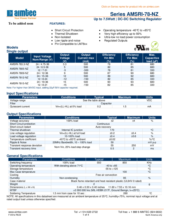 Module DC-DC 1-OUT 12V 0.5A 7.5W 6-Pin SMD Tube