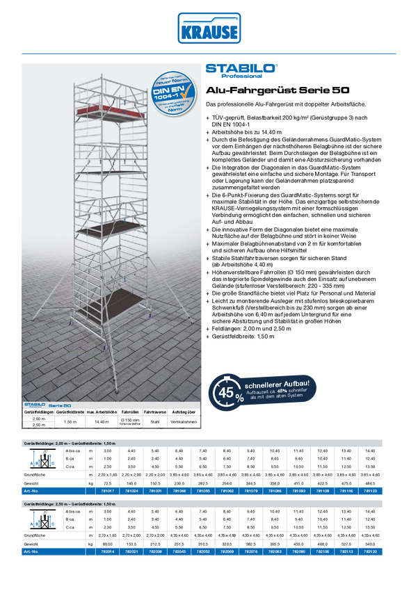 Krause 781031 FahrGerüst aluminium Rusztowanie na kółkach mobilne Maksymalna wysokość robocza: 5.40 m srebrny 192.5 kg