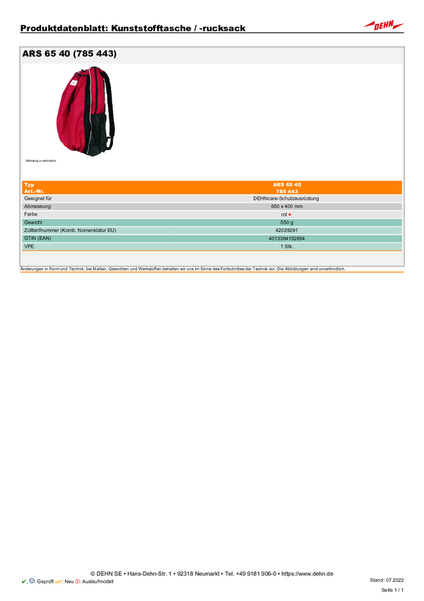 DEHN 785443 ARS 65 40 Torba na urządzenie pomiarowe