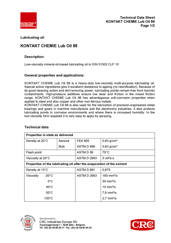 Olej do mechaniki precyzyjnej Kontakt Chemie LUB OIL 88 78509-AF 200 ml