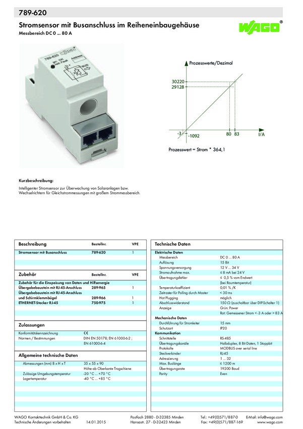 WAGO 789-620 czujnik przepływu prądu ze złączem sieci