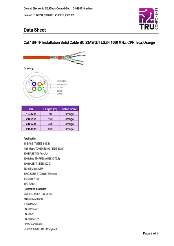 TRU COMPONENTS TC-7892844 Przewód sieciowy, CAT 7, S/FTP, 50 m