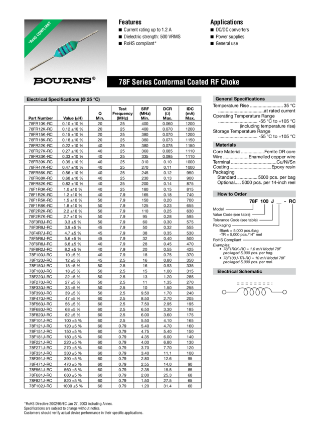 Ind RF Choke Bobbin Core 1mH 5% 790KHz 60Q-Factor Ferrite 60mA AXL T/R