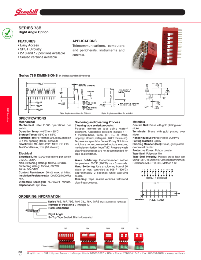 Switch DIP OFF ON DPST 5 Raised Slide 0.15A 30VDC PC Pins 2000Cycle/SwitchCycle 2.54mm Thru-Hole Tube