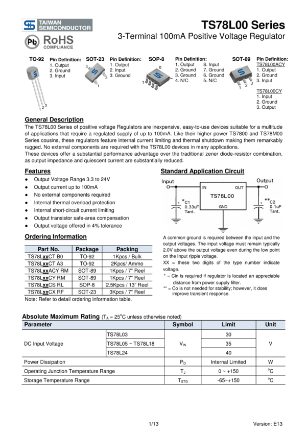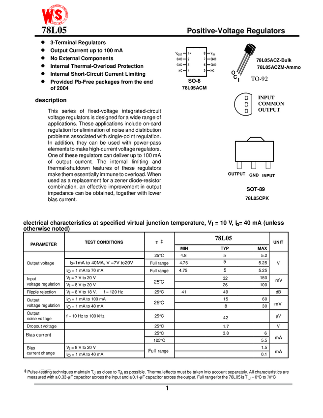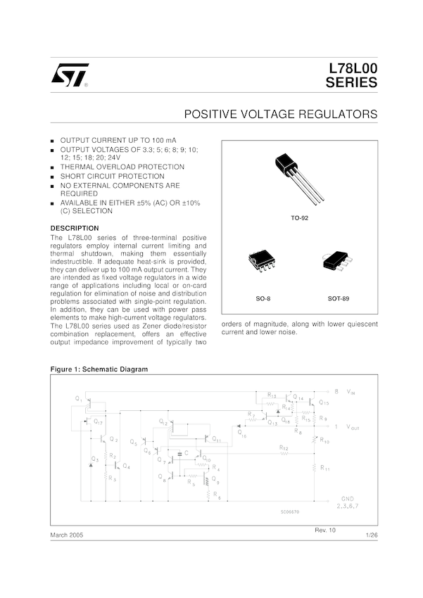 Stabilizator; liniowy; 78L05ACZ; 5V; 0,1A; stały; TO92; THT; 09614; RoHS; opakowanie/100szt