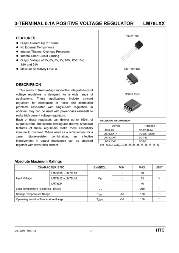 Stabilizator napięcia +9V, 0.1A, SOT89