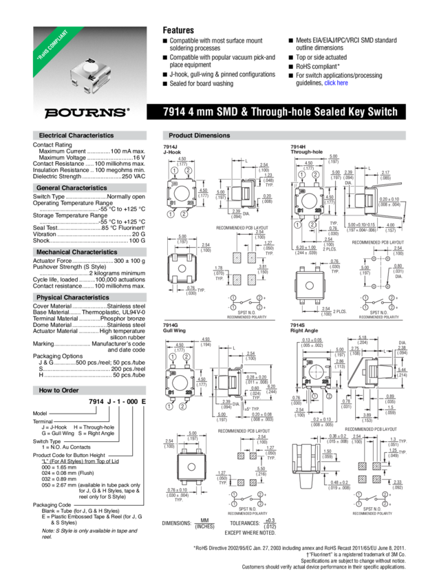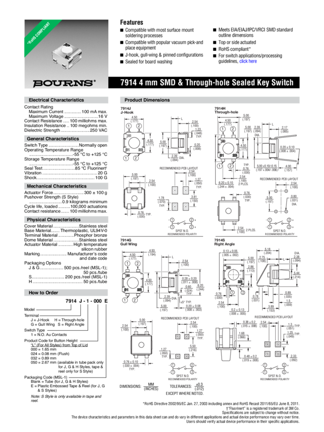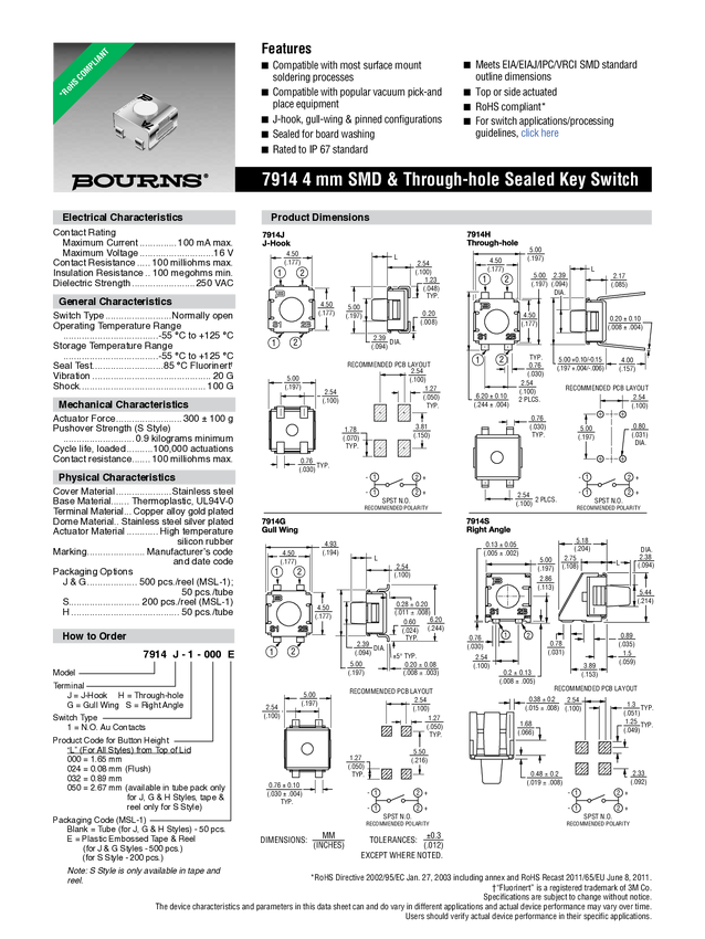 Bourns 7914J-1-000E Przycisk, 16 V, 1 szt.