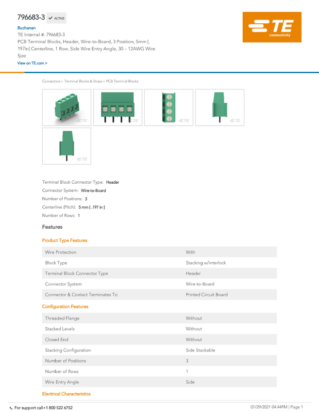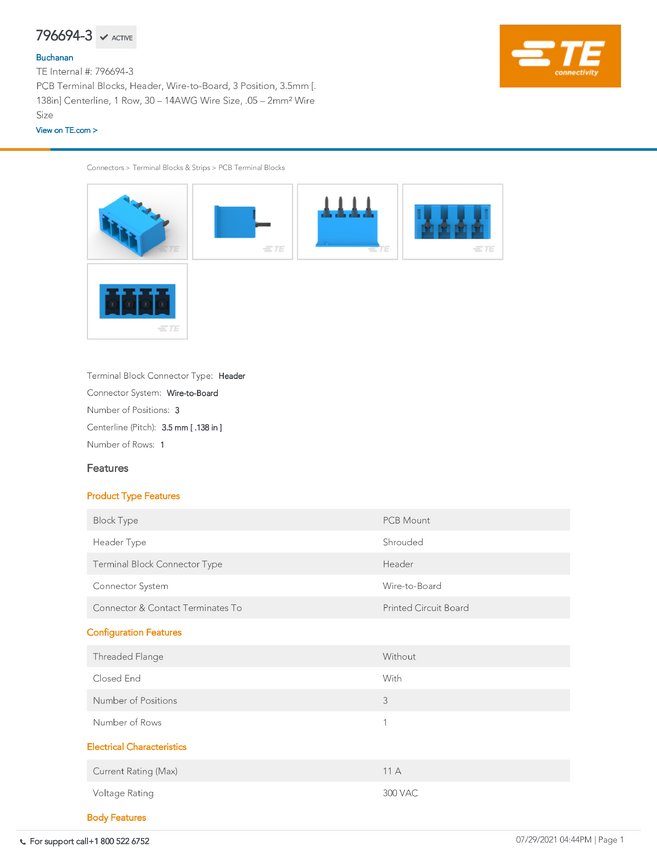 TE Connectivity 796698-3 TE AMP Eurostyle Terminal Blocks, 1 szt.