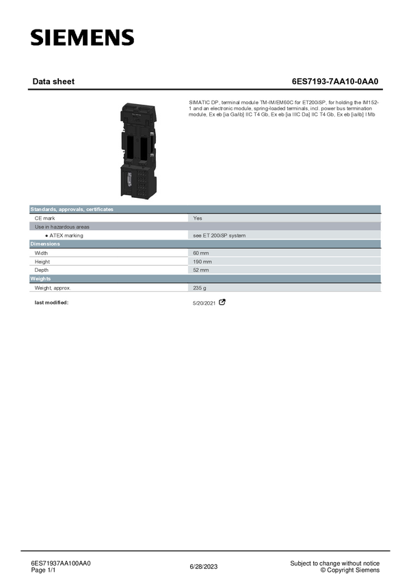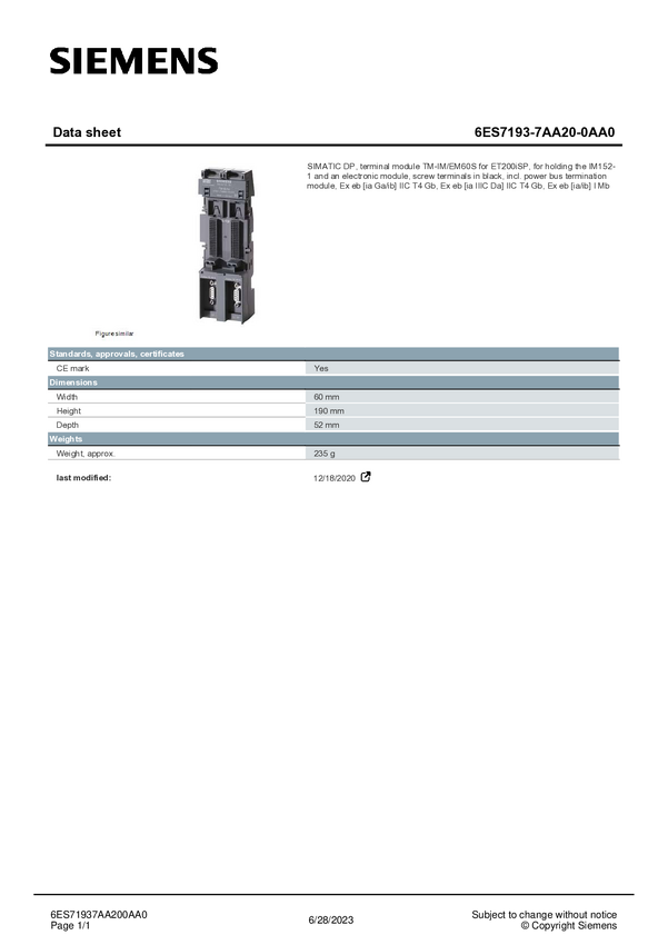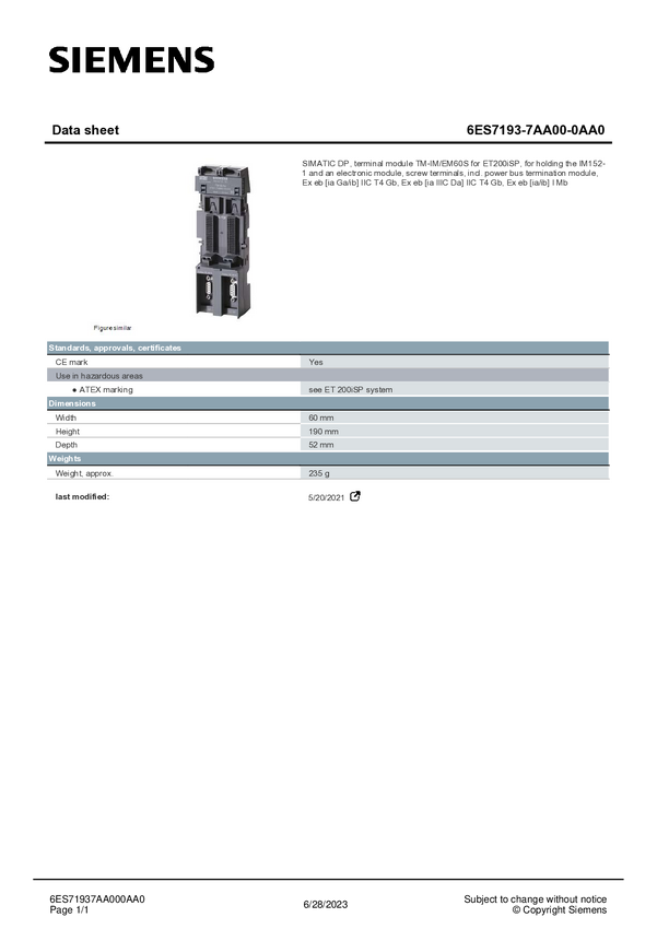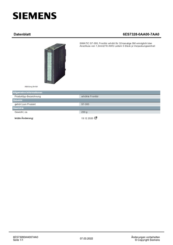 Obudowa PLC Siemens 6ES7328-0AA00-7AA0 6ES73280AA007AA0